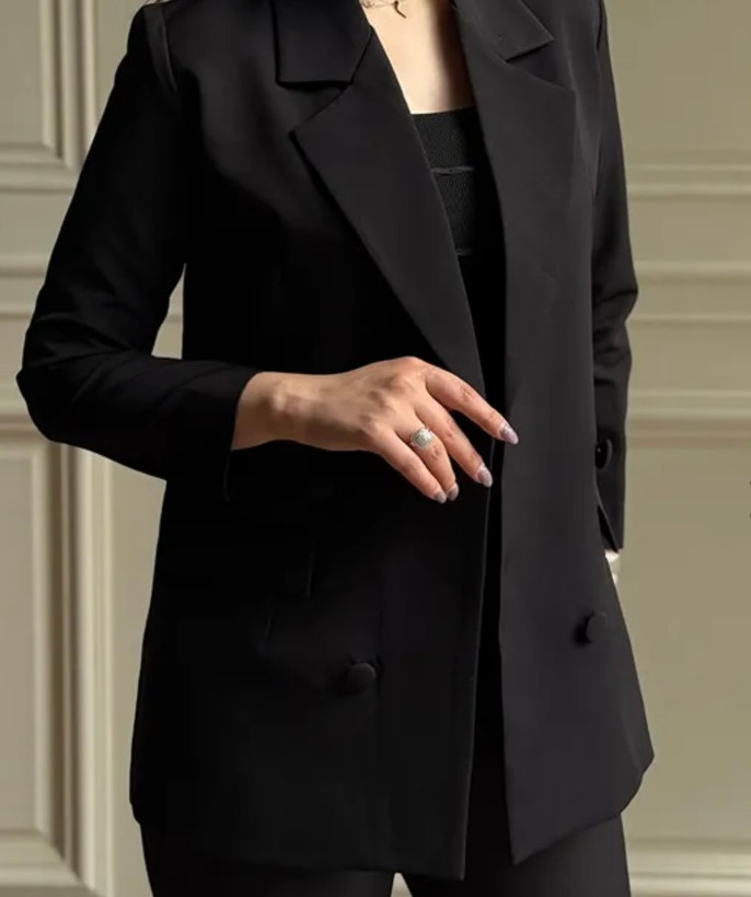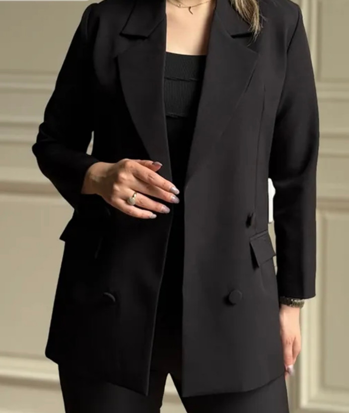 کت ۴دکمه جیب نما یک مانتو کتی زنانه که از جنس کرپ دبل ترک بوده و دارای آستر میباشد.این مانتو با طراحی کلاسیک در رنگ مشکی و سایزبندی ۳۸ تا ۴۸ موجود شده است.