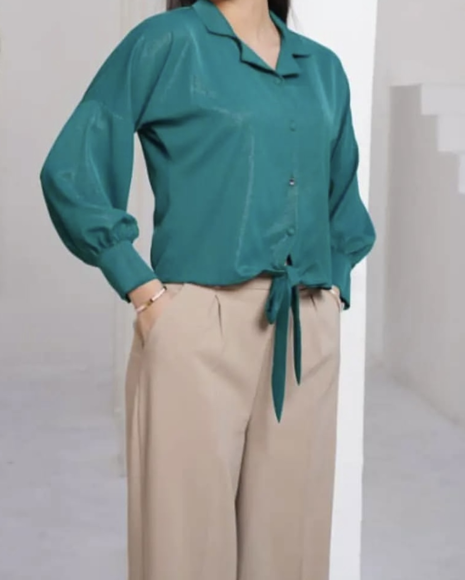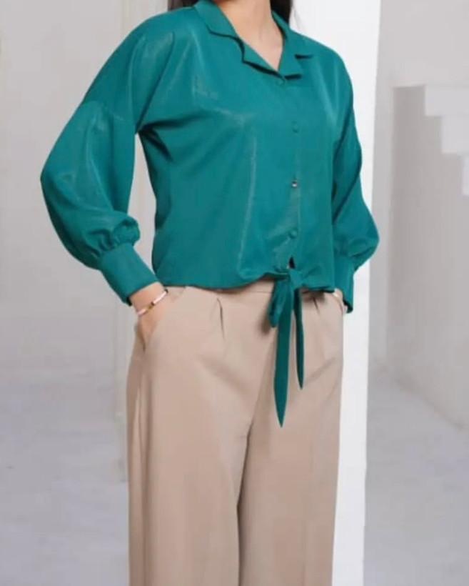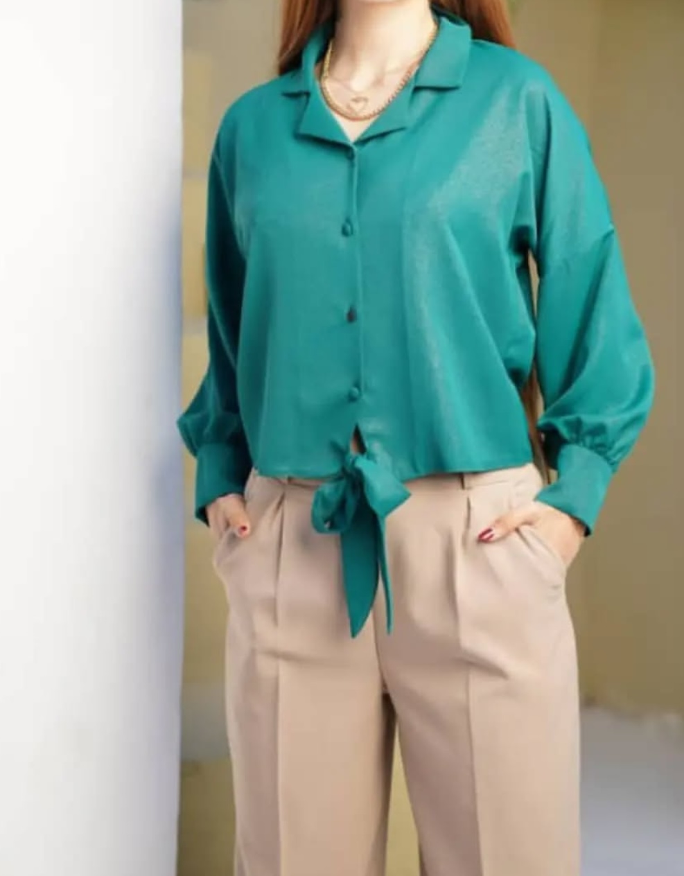 شومیز مدل جلو گره یک شومیز شاین دار بسیار زیبا است در رنگبندی متنوع و سایزبندی موجود میباشد.